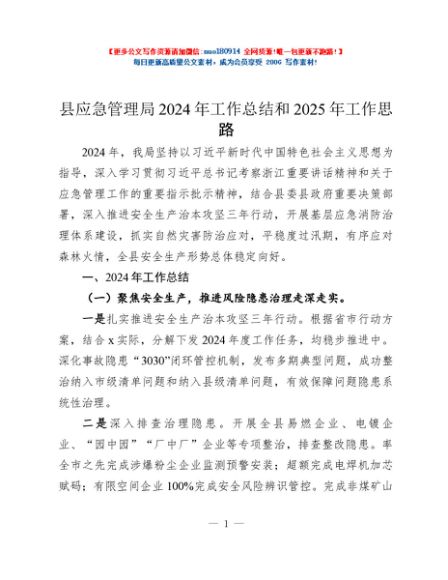 / 县应急管理局2024年工作总结和2025年工作思路