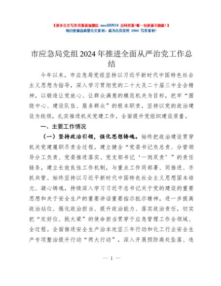/ 市应急局党组2024年推进全面从严治党工作总结