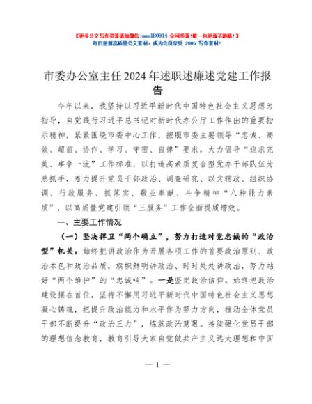 / 市委办公室主任2024年述职述廉述党建工作报告