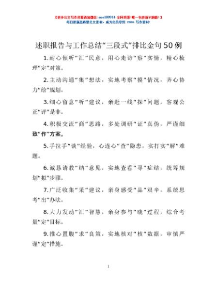/ 述职报告与工作总结“三段式”排比金句50例