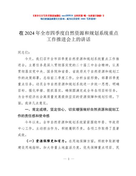 / 在2024年全市四季度自然资源和规划系统重点工作推进会上的讲话