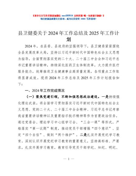 / 县卫健委关于2024年工作总结及2025年工作计划