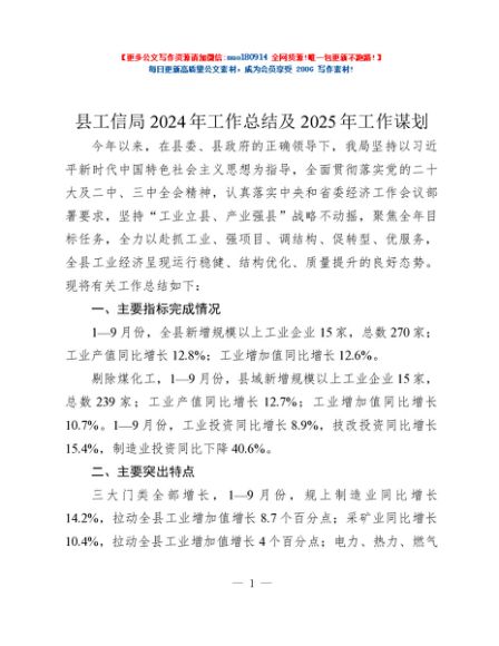 / 县工信局2024年工作总结及2025年工作谋划
