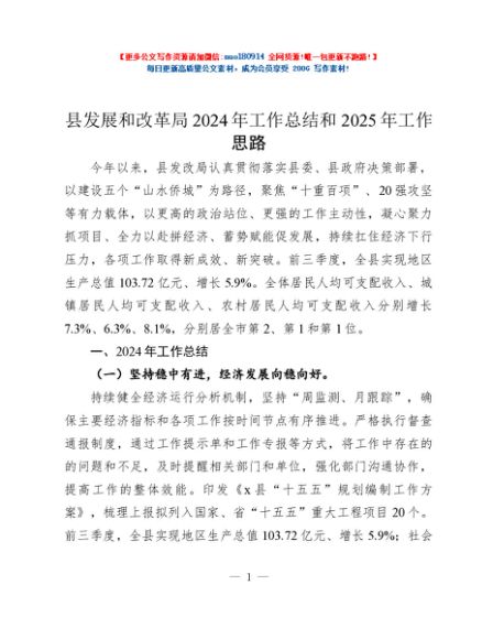 / 县发展和改革局2024年工作总结和2025年工作思路