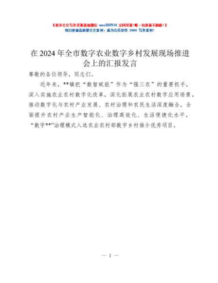 / 在2024年全市数字农业数字乡村发展现场推进会上的汇报发言