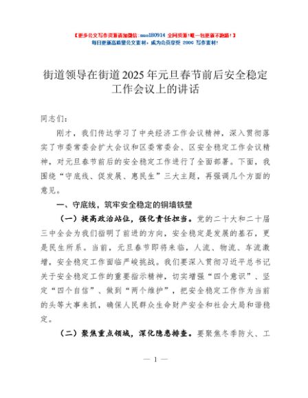 / 街道领导在街道2025年元旦春节前后安全稳定工作会议上的讲话