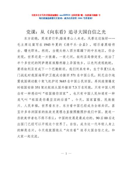/ 党课:从《向东看》追寻大国自信之光