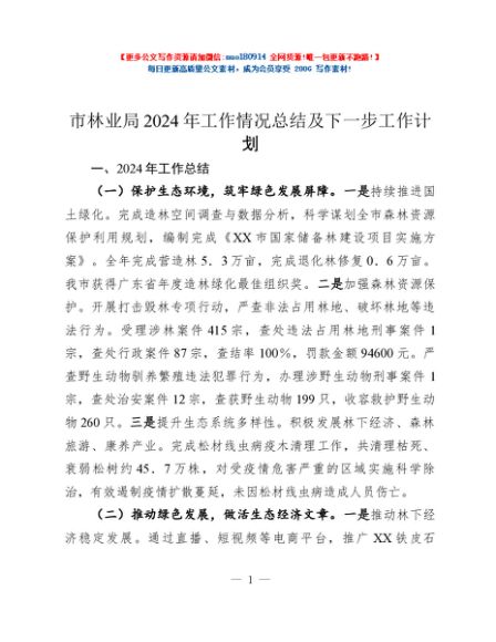 / 市林业局2024年工作情况总结及下一步工作计划