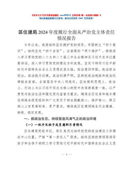 / 区住建局2024年度履行全面从严治党主体责任情况报告