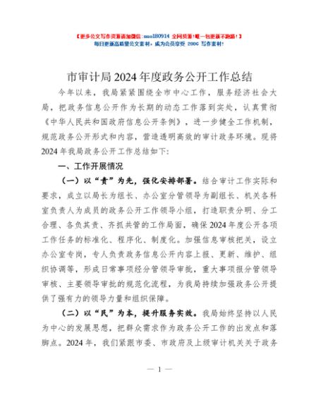 / 市审计局2024年度政务公开工作总结
