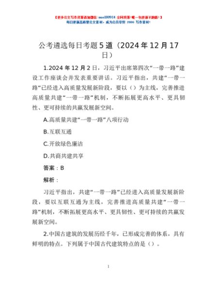 / 公考遴选每日考题5道(2024年12月17日)