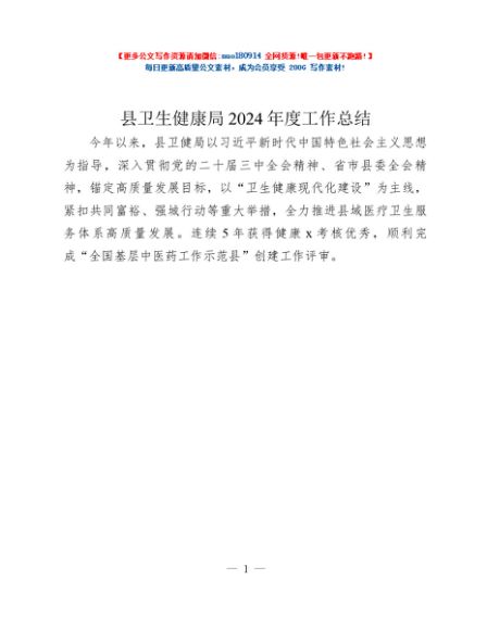 / 县卫生健康局2024年度工作总结