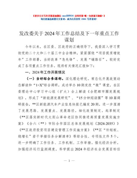/ 发改委关于2024年工作总结及下一年重点工作谋划