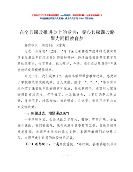 在全县课改推进会上的发言:凝心共探课改路聚力同圆教育梦