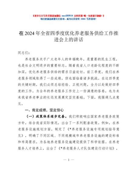 / 在2024年全省四季度优化养老服务供给工作推进会上的讲话