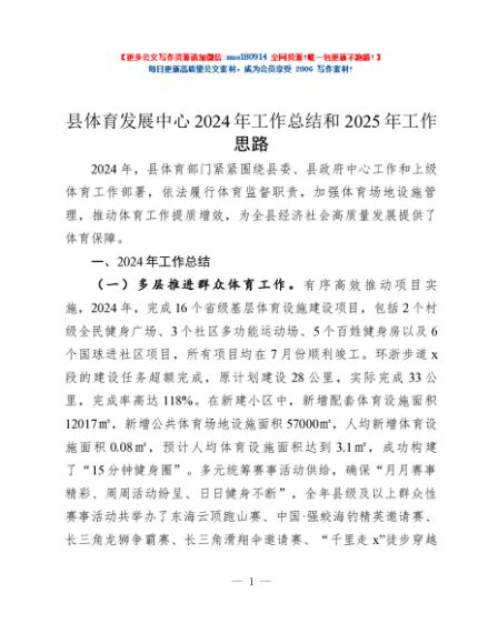 / 县体育发展中心2024年工作总结和2025年工作思路