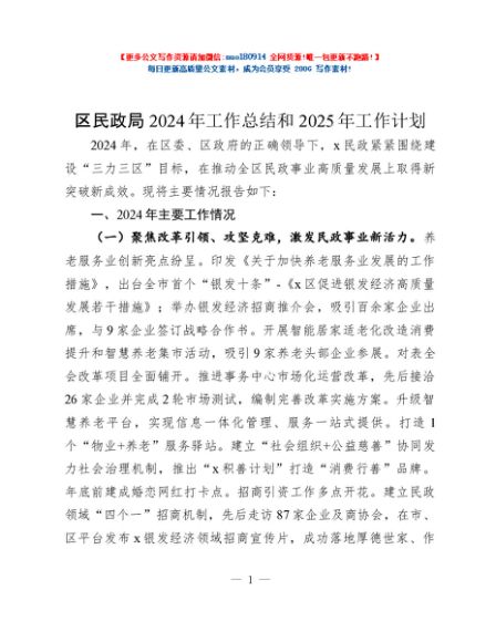 / 区民政局2024年工作总结和2025年工作计划