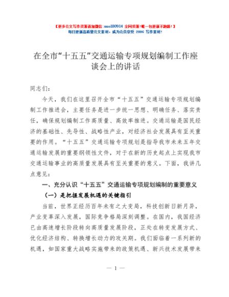 / 在全市“十五五”交通运输专项规划编制工作座谈会上的讲话