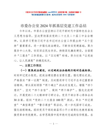/ 市委办公室2024年抓基层党建工作总结