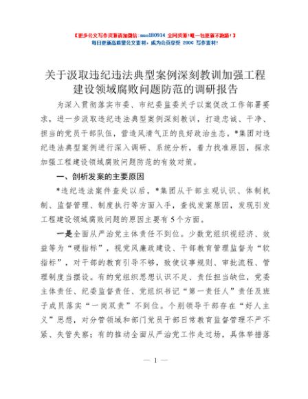 / 关于汲取违纪违法典型案例深刻教训加强工程建设领域腐败问题防范的调研报告