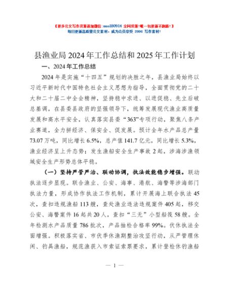 / 县渔业局2024年工作总结和2025年工作计划