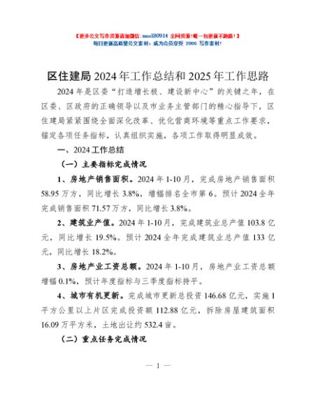 / 区住建局2024年工作总结和2025年工作思路