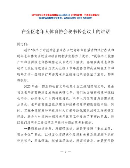 / 在全区老年人体育协会秘书长会议上的讲话