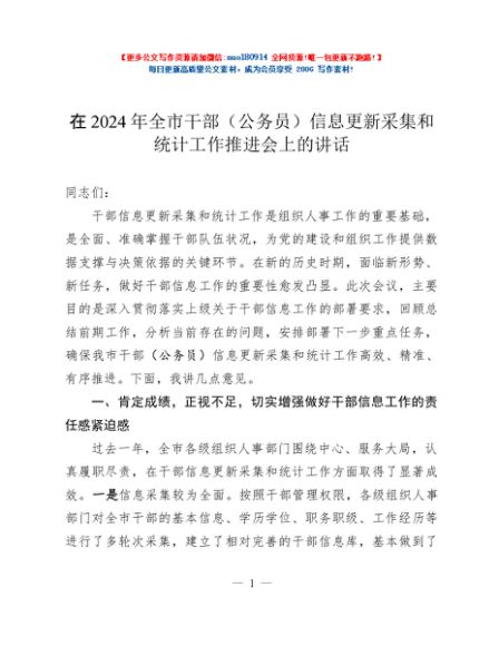 / 在2024年全市干部(公务员)信息更新采集和统计工作推进会上的讲话