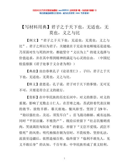 / 【写材料用典】君子之于天下也,无适也,无莫也,义之与比
