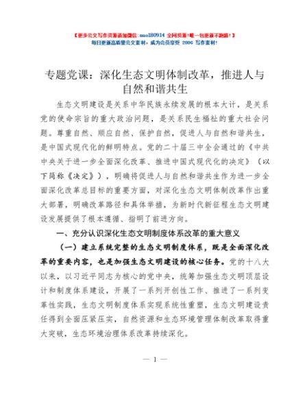 / 专题党课:深化生态文明体制改革,推进人与自然和谐共生
