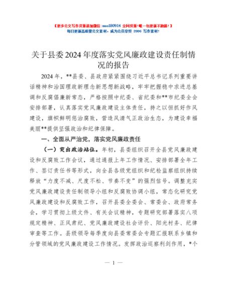 / 关于县委2024年度落实党风廉政建设责任制情况的报告