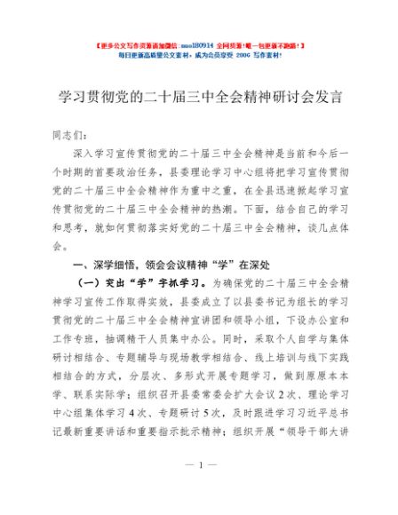 / 学习贯彻党的二十届三中全会精神研讨会发言