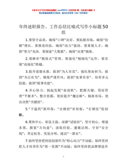 / 年终述职报告、工作总结比喻式写作小标题50组
