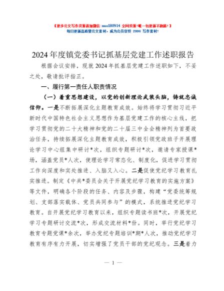 / 2024年度镇党委书记抓基层党建工作述职报告