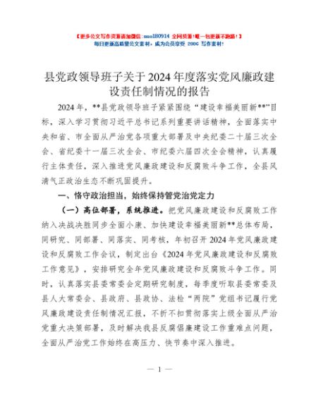 / 县党政领导班子关于2024年度落实党风廉政建设责任制情况的报告