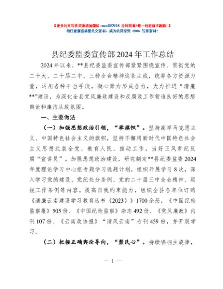 / 县纪委监委宣传部2024年工作总结