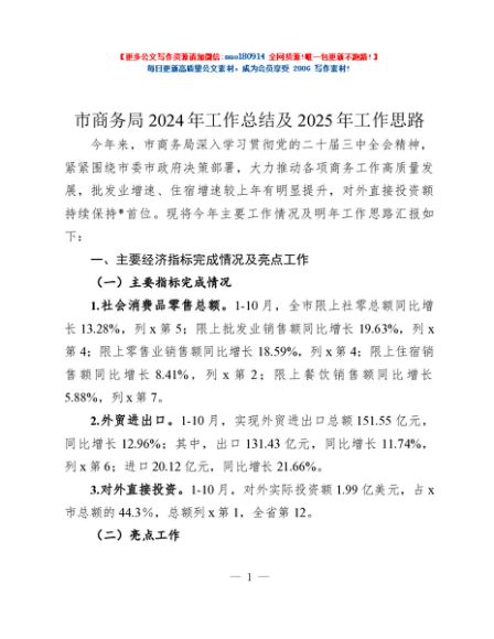 / 市商务局2024年工作总结及2025年工作思路