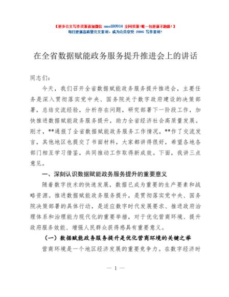 / 在全省数据赋能政务服务提升推进会上的讲话