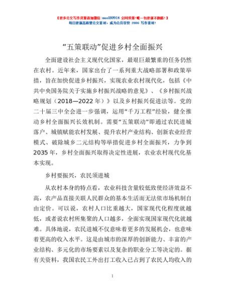 / “五策联动”促进乡村全面振兴