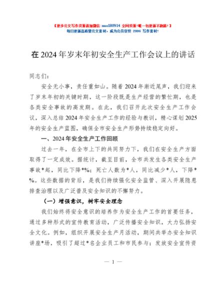 / 在2024年岁末年初安全生产工作会议上的讲话