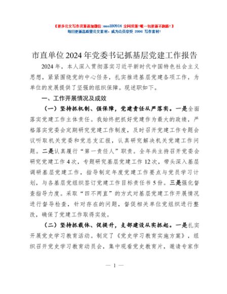 / 市直单位2024年党委书记抓基层党建工作报告