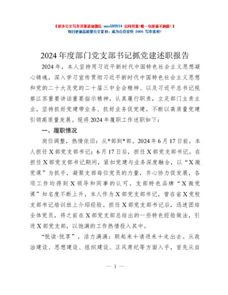 / 2024年度部门党支部书记抓党建述职报告