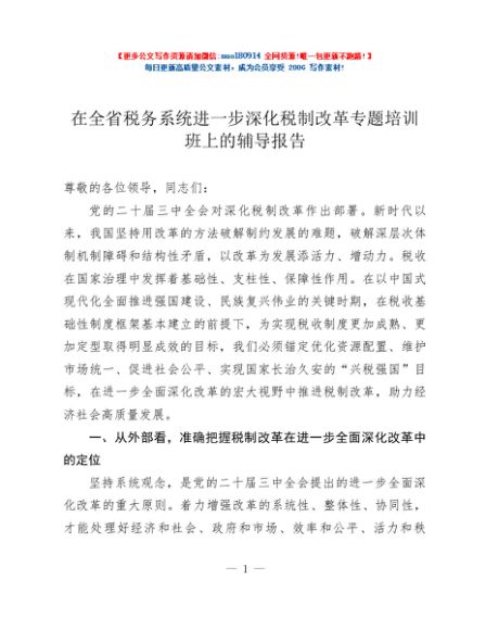 / 在全省税务系统进一步深化税制改革专题培训班上的辅导报告