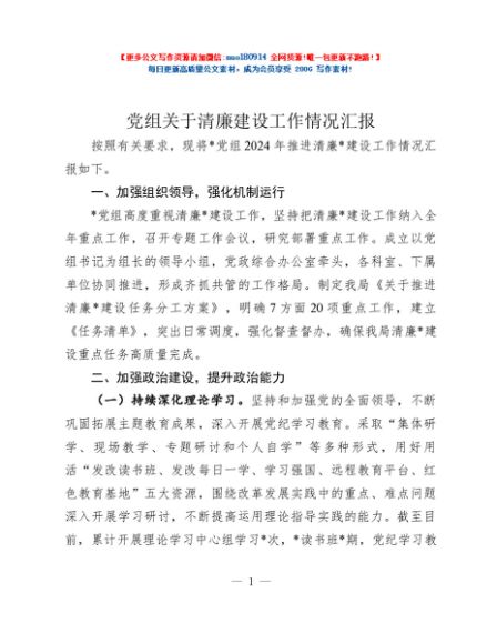 / 党组关于清廉建设工作情况汇报