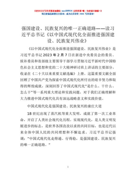 强国建设、民族复兴的唯一正确道路——读习近平总书记《以中国式现代化全面推进强国建设、民族复兴伟业》