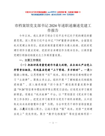 / 市档案馆党支部书记2024年述职述廉述党建工作报告