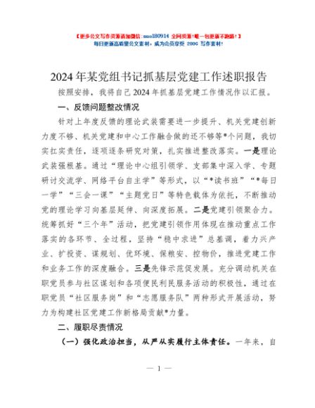 / 2024年某党组书记抓基层党建工作述职报告