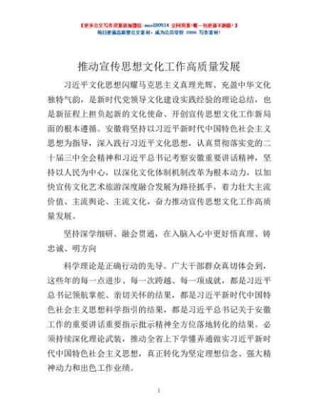 / 推动宣传思想文化工作高质量发展