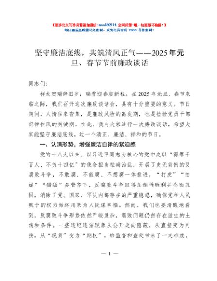 / 坚守廉洁底线,共筑清风正气——2025年元旦、春节节前廉政谈话