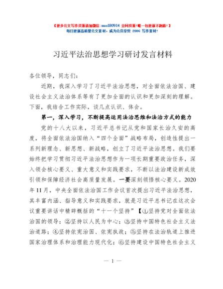 / 习近平法治思想学习研讨发言材料